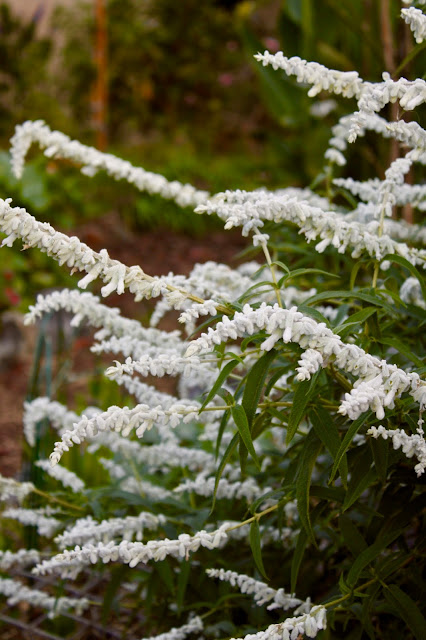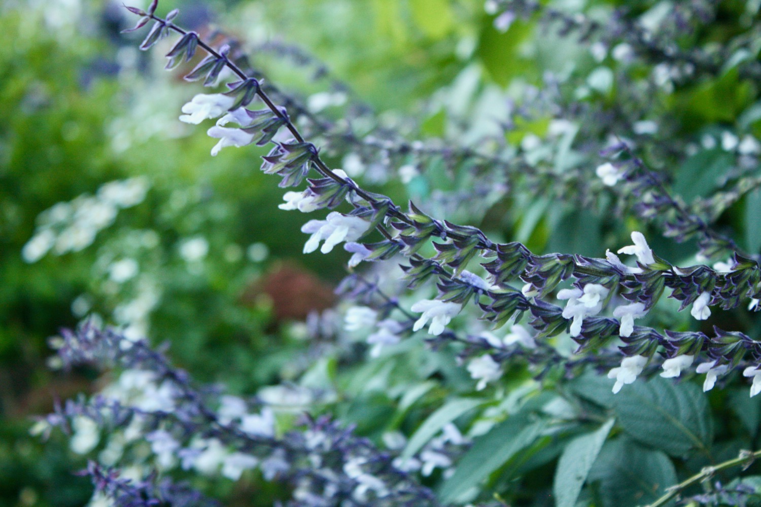 The Salvia leucanthas were particularly lovely, with their soft, downy drops of velvet, in purples and whites.
