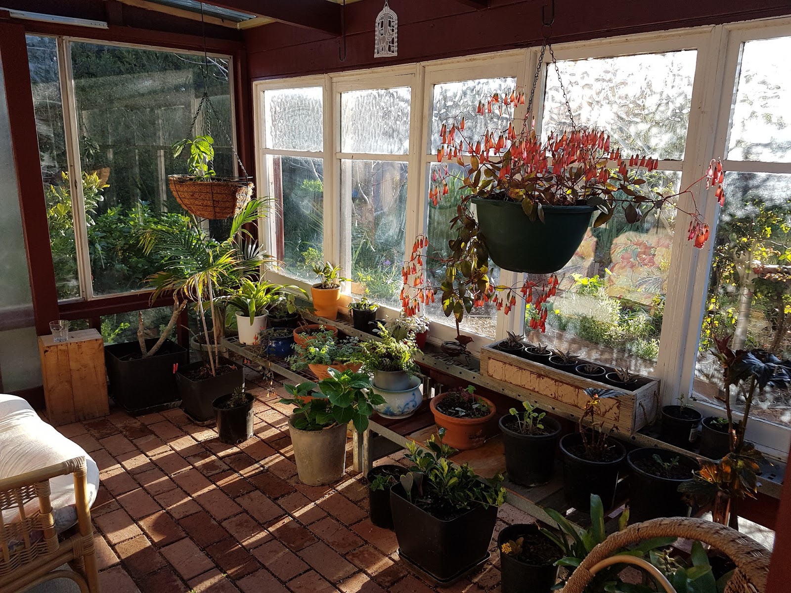 Being in the Ballarat vicinity, I contacted Annie, Little Red Hen Jan and Ric-Rac Jodie, giving them very little notice, in the hope that they might be available for a coffee. Annie promptly offered to have us all to her garden for 'tea in the hothouse'. I had secretly hoped I'd get to see her hothouse and garden, but didn't want to invite myself! Awesome!