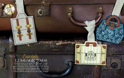 In amongst all of the packing and moving and packing and moving, my only creative activities were to complete two projects for Australian Homespun magazine. For the June 2016 issue, I submitted these three little embroidered luggage tags.