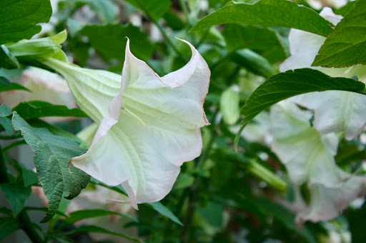 The first of the treasures to greet us was this Angel's Trumpet (Brugmansia sp.) with its delicious blush of apricot. I say delicious with some poetic licence considering all parts of it are highly toxic!